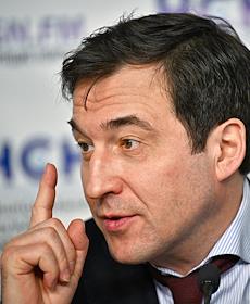 Пресс-конференция "Подведение итогов проекта "Москва-2024: справедливый кандидат" в пресс-центре "Национальной Службе Новостей". Заместитель руководителя фракции "Справедливая Россия- За правду" в Государственной думе России Андрей Кузнецов во время пресс-конференции.