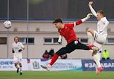 FONBET - Кубок России по футболу. 1/4 финала. Матч между командами "СКА-Хабаровск" (Хабаровск) - "Динамо"(Москва) на стадионе "Кировец". Игрок команды "Динамо" Лука Гагнидзе (в центре) и игрок команды "СКА-Хабаровск" Вячеслав Подберёзкин (слева) во время матча.