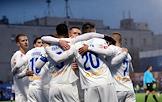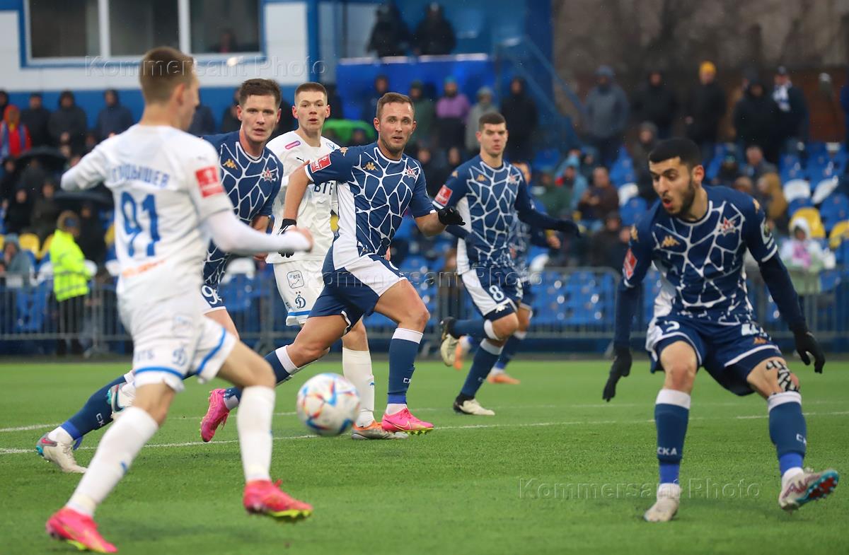 FONBET - Кубок России по футболу. 1/4 финала. Матч между командами "СКА-Хабаровск" (Хабаровск) - "Динамо"(Москва) на стадионе "Кировец". Игроки команды "Динамо" во время матча.