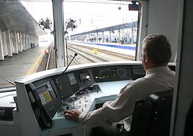На Горьковской железной дороге (ГЖД) появился новый вид подвижного состава - рельсовые автобусы РА — 1 производства ОАО "Метровагонмаш". Машинист в кабине рельсового автобуса.