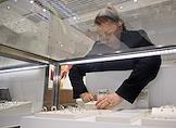 Работа ювелирного магазина SUNLIGH в TЦ "МЕГА Белая дача". Жанровая фотография. Продавец у витрины с кольцами.