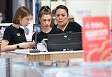 Работа ювелирного магазина SUNLIGH в TЦ "МЕГА Белая дача". Жанровая фотография. Продавцы у кассы в торговом зале.