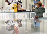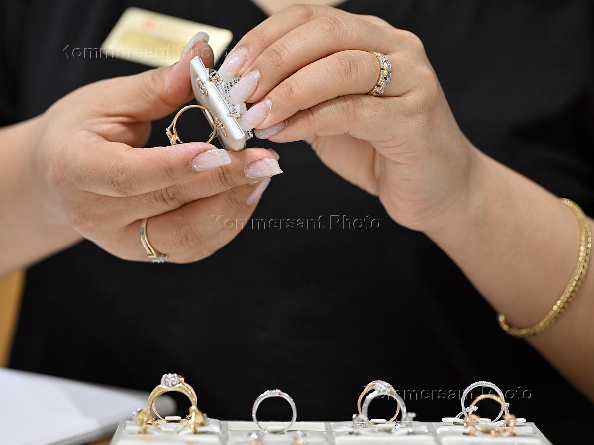 Работа ювелирного магазина SUNLIGH в TЦ "МЕГА Белая дача". Жанровая фотография. Покупательница примеряет браслет.