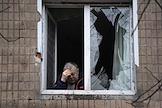 Последствия обстрела Донецка. Убита женщина на Ленкоранской улице, 12, еще одна женщина ранена. Выбитые стекла в окне жилого дома.