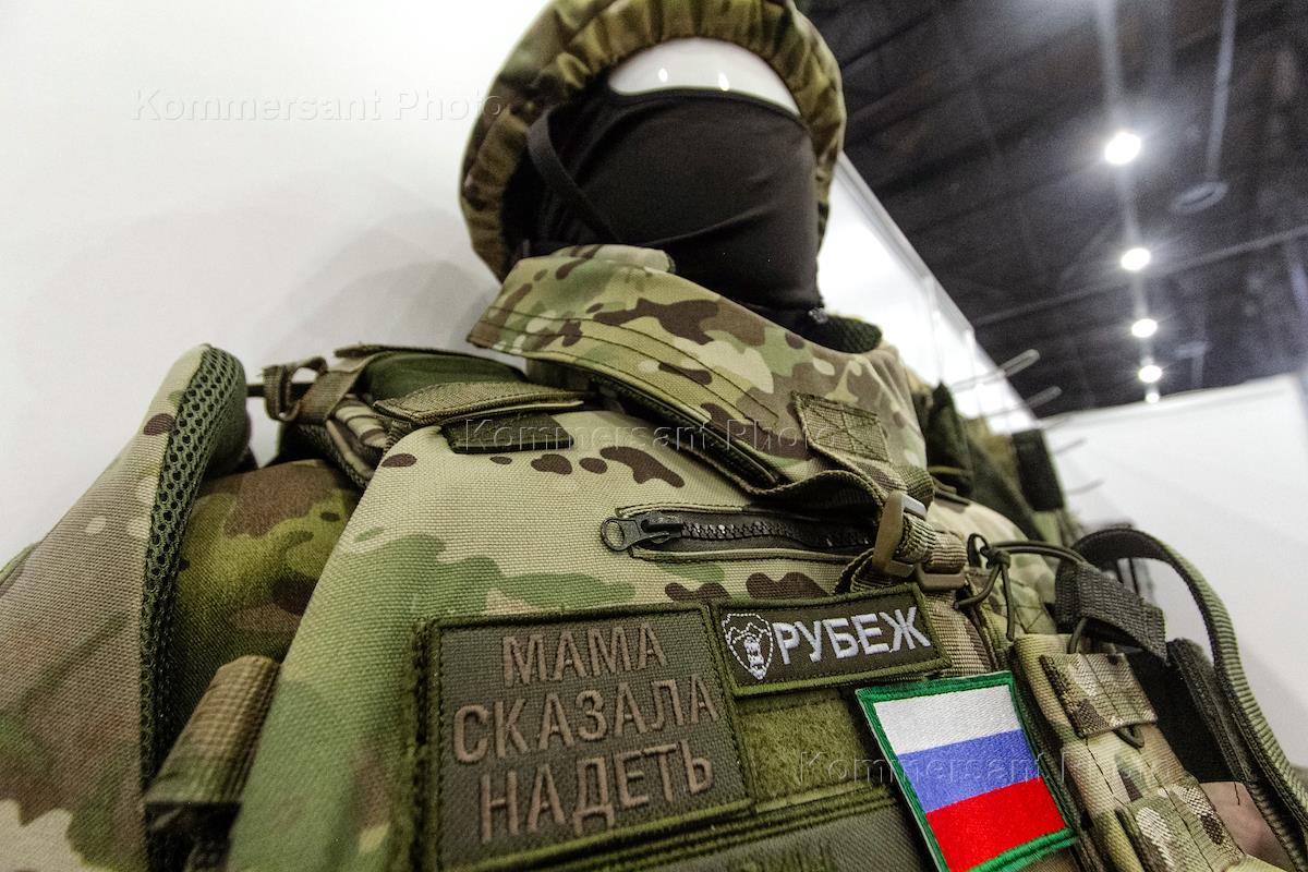 Выставка передовых технологий обеспечения безопасности личности, общества и государства "ЭкспоТехноСтраж" в конгрессно-выставочном центре "Экспофорум". Стенд военной формы.