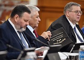 Заседание правительства России. Слева направо: министр труда и социальной защиты России Антон Котяков, министр внутренних дел России Владимир Колокольцев и заместитель председателя правительства России Алексей Оверчук во время заседания.