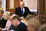 Заседание правительства России. Председатель правительства России Михаил Мишустин (в центре) во время заседания.