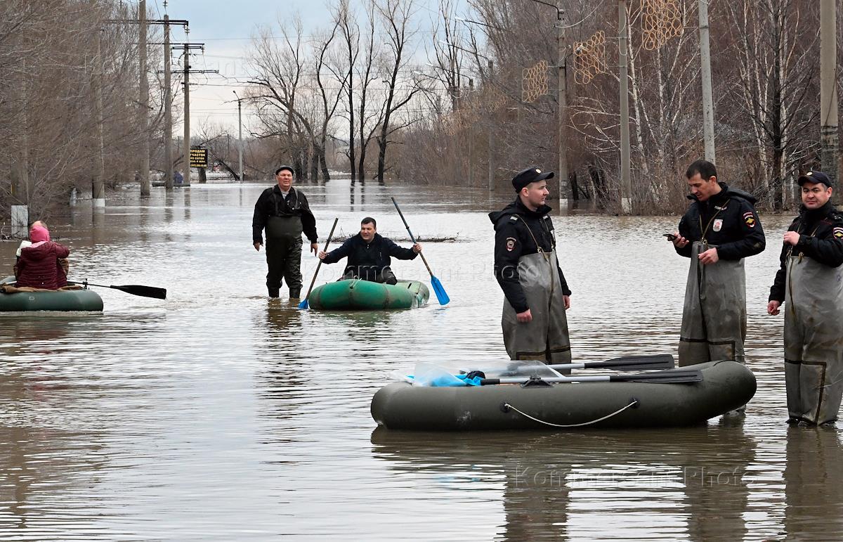 Последствия наводнения в городе Орске. Жанровая фотография. Сотрудники полиции во время эвакуации жителей.