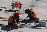 Строительство четырехполосной дороги протяженностью 7,8 километра в обход Алушты. Жанровая фотография. Рабочие на строительной площадке.