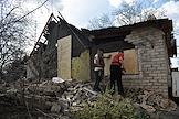 Последствия обстрела Горловки. Местные жители во время ремонтных работ в доме, пострадавшем от обстрела.