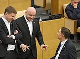 Пленарное заседание Государственной думы (ГД) России. Член комитета ГД России по транспорту и строительству Виктор Дерябкин (в центре) во время заседания.