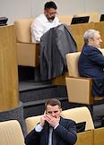 Пленарное заседание Государственной думы (ГД) России. Член комитета ГД России по транспорту и строительству Виктор Дерябкин (в центре) во время заседания.