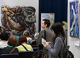 Международная выставка-конкурс современного искусства "Российская неделя искусств" в конгресс-холле "Амбер-плаза". Посетители на выставке.