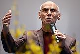 Международная выставка-конкурс современного искусства "Российская неделя искусств" в конгресс-холле "Амбер-плаза". Искусствовед Григорий Гинзбург на выставке.