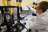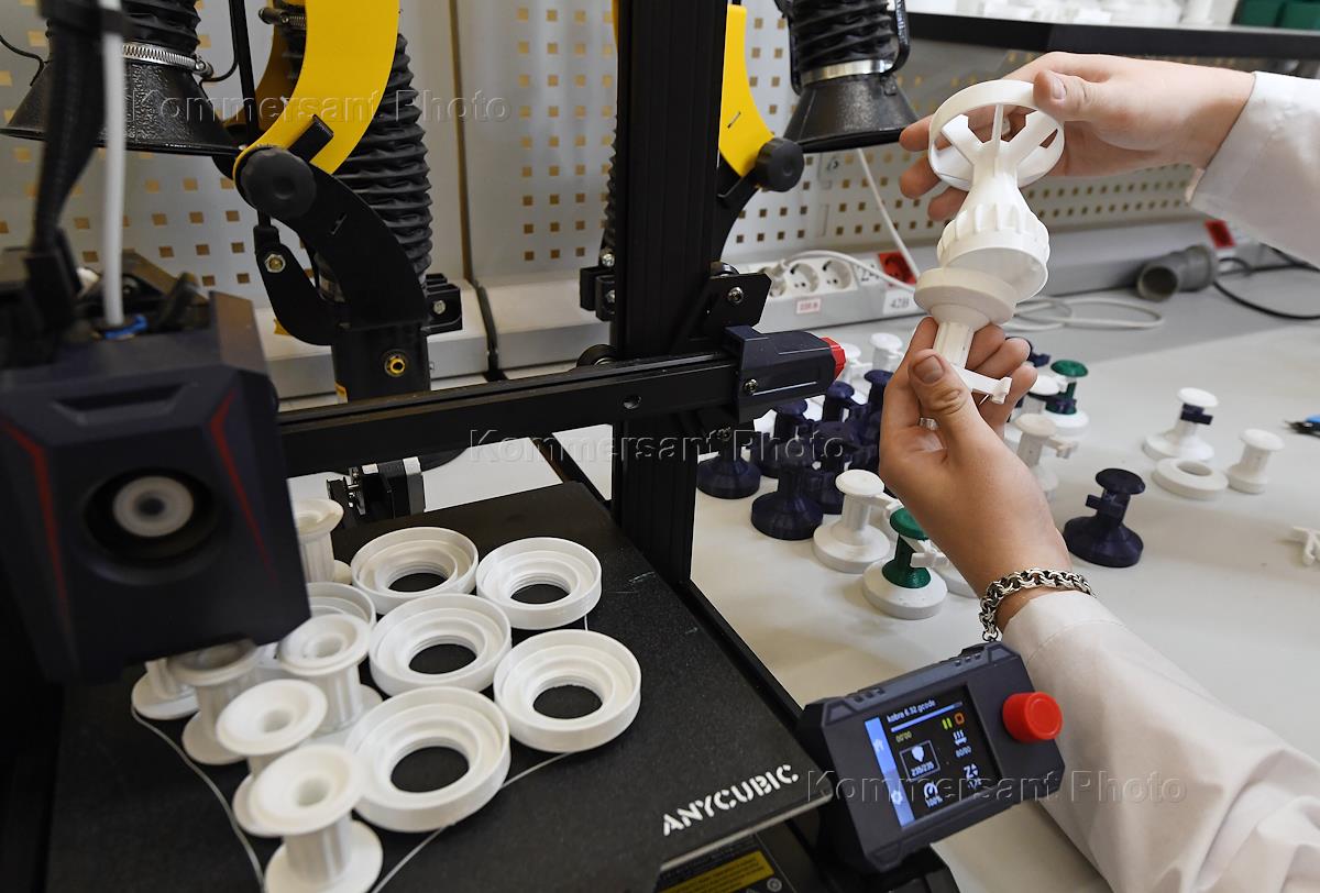 Студенты Симферопольского колледжа радиоэлектроники во время изготовления изделий для стабилизации боеприпасов во время полета, напечатанных на 3D-принтере, для дальнейшей отправки в зону Специальной военной операции (СВО).