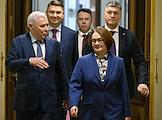 Пленарное заседание Государственной думы (ГД) России. Слева направо: заместители председателя ГД России Петр Толстой, Анна Кузнецова, председатель Центрального Банка России Эльвира Набиуллина и председатель ГД России Вячеслав Володин во время заседания.