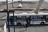International airport "Orsk". Genre photography. Passengers boarding the bus platform.