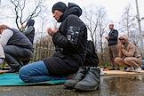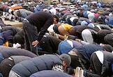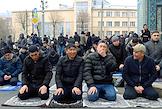 Праздничные мероприятия в день Ураза Байрам у Соборной мечети Санкт-Петербурга. Верующие во время богослужения.