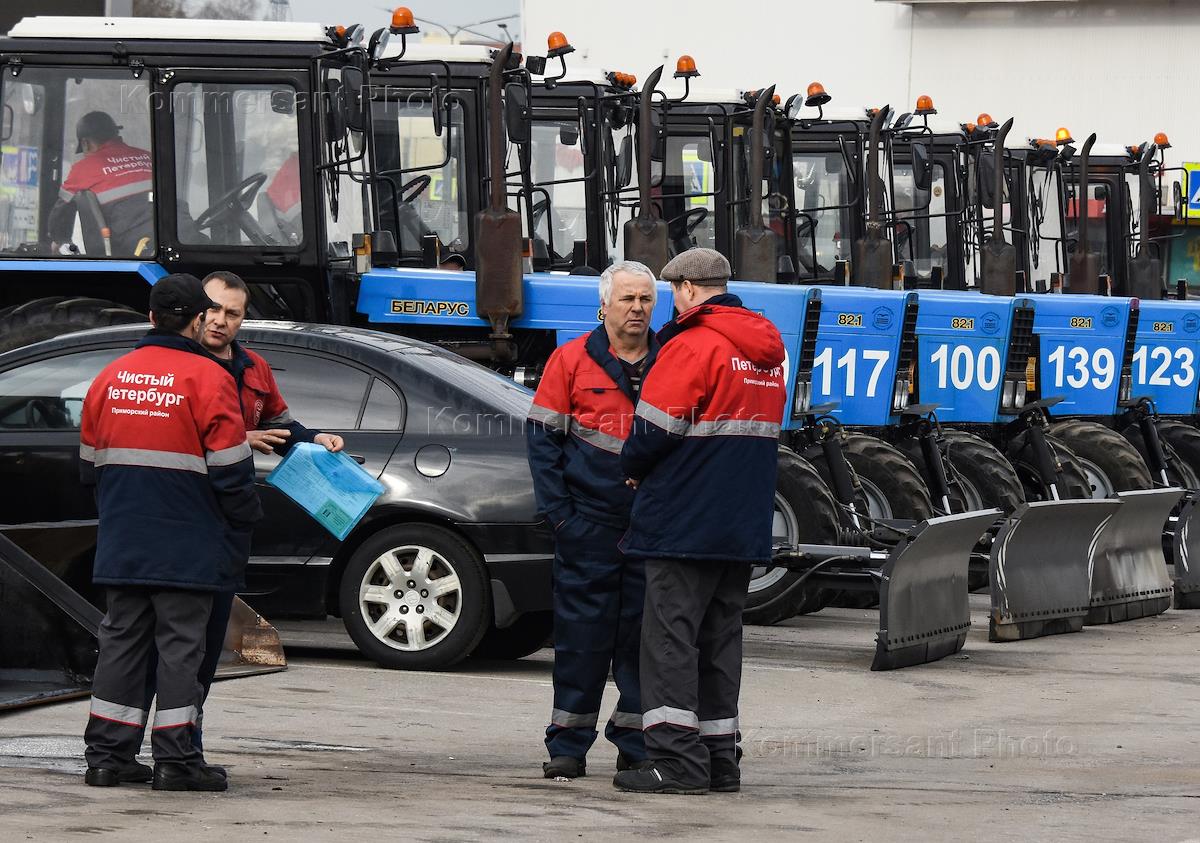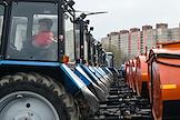 Genre photography. Views of St. Petersburg. Traditional review of specialized cleaning equipment for the housing and communal services of the city in the Primorsky district on Bogatyrsky Avenue.