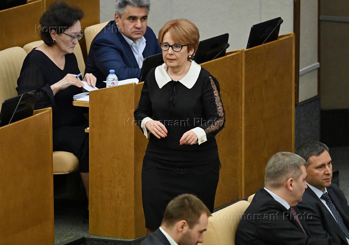 Пленарное заседание Государственной Думы (ГД) России. Первый заместитель председателя комитета ГД России по малому и среднему предпринимательству Альфия Когогина во время заседания.