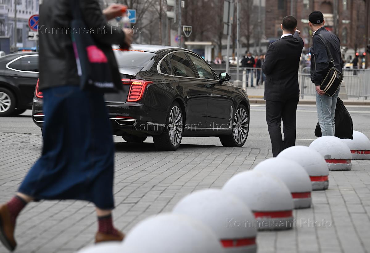 Виды Москвы. Автосалон Bentley Moscow в Театральном проезде. Жанровая фотография. Автомобиль Bentley Continental GT.