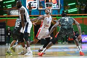 Единая лига ВТБ по баскетболу 2023/2024. Матч между командами УНИКС (Казань) и ЦСКА (Москва) на стадионе "Баскет-холл". Игрок команды ЦСКА Мело Тримбл (в центре) во время матча.