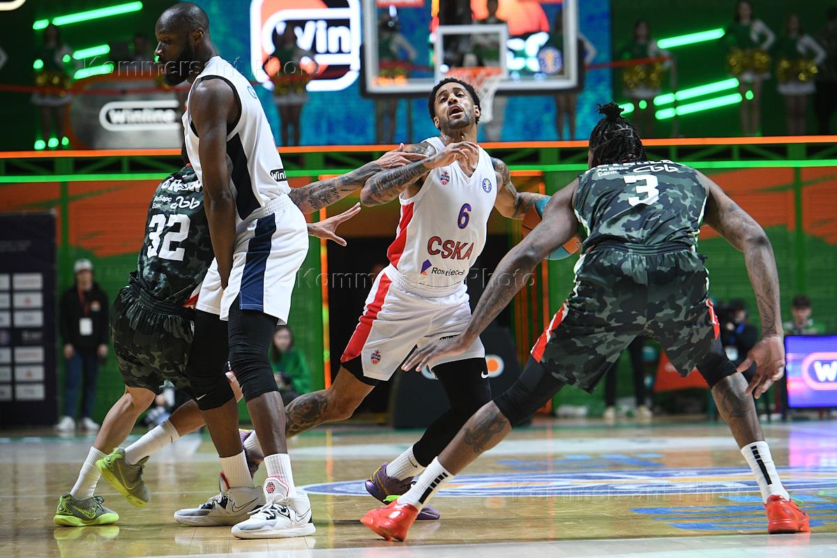 VTB United Basketball League 2023/2024. Match between the teams UNICS (Kazan) and CSKA (Moscow) at the Basket Hall stadium. CSKA team player Melo Trimble (center) during the match.