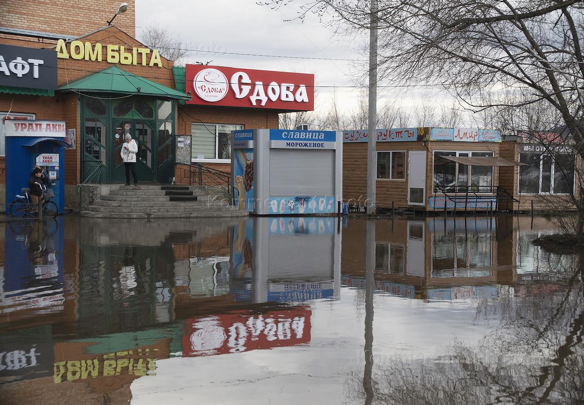 Consequences of flooding in the Aviagorodok microdistrict. Flooded area near a shopping center.