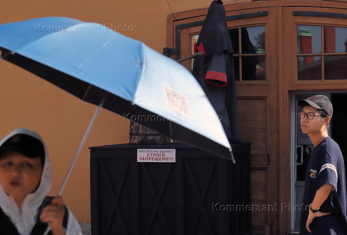 Виды Санкт-Петербурга. Жаркая погода в городе. Жанровая фотография. Иностранные туристы из Азии на экскурсии в Петропавловской крепости.