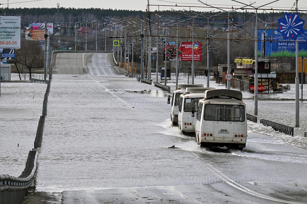 Последствия наводнения в Кургане. Жанровая фотография. Перелив реки Тобол через шоссе Тюнина.
