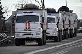 Последствия наводнения в Кургане. Жанровая фотография. Спецтехника с надувными спасательными лодками на дороге.