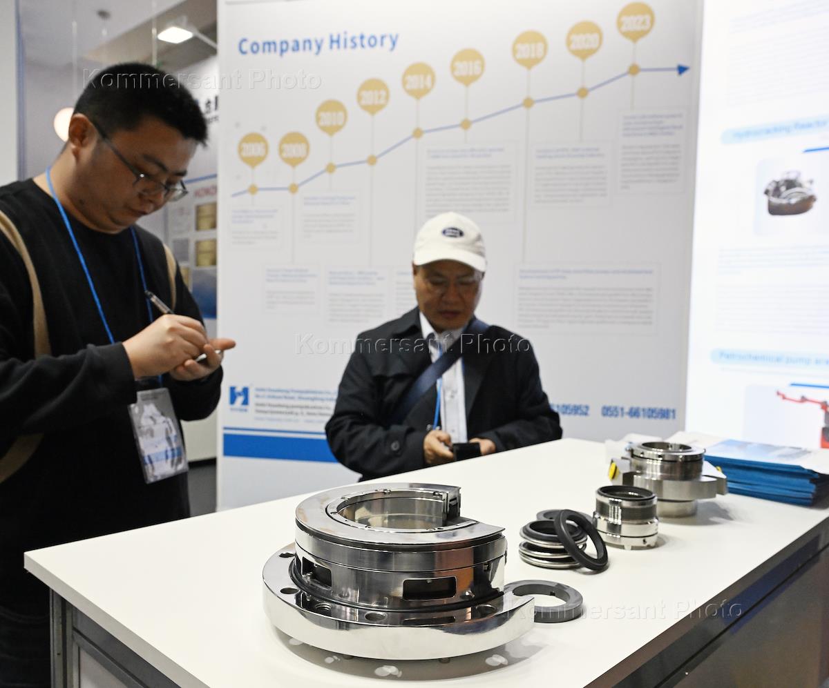 23-я международная выставка "НЕФТЕГАЗ-2024. Оборудование и технологии для нефтегазового комплекса" в центральный выставочный комплекс (ЦВК) "Экспоцентр". Жанровая фотография. Стенд компании CMD - производство взрывозащищенного общепромышленного оборудования.