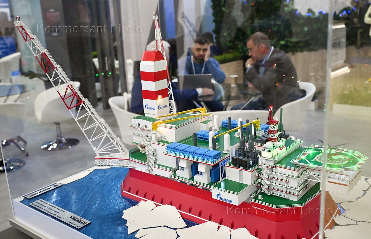 23-я международная выставка "НЕФТЕГАЗ-2024. Оборудование и технологии для нефтегазового комплекса" в центральный выставочный комплекс (ЦВК) "Экспоцентр". Жанровая фотография. Стенд Северной Сервисной Компании. Модель азотной компрессорной станции ТГА-10/251.