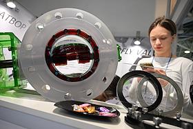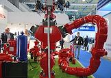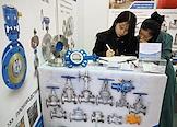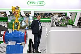 23-я международная выставка "НЕФТЕГАЗ-2024. Оборудование и технологии для нефтегазового комплекса" в центральный выставочный комплекс (ЦВК) "Экспоцентр". Жанровая фотография. Стенд компании "РУСТ-95" - производителя трубопроводной арматуры.