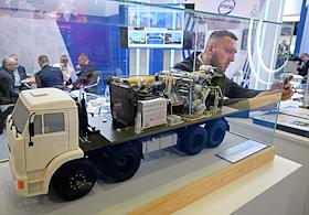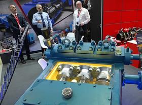 23-я международная выставка "НЕФТЕГАЗ-2024. Оборудование и технологии для нефтегазового комплекса" в центральный выставочный комплекс (ЦВК) "Экспоцентр". Жанровая фотография. Стенд Северной Сервисной Компании. Модель азотной компрессорной станции ТГА-10/251.