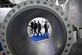 23-я международная выставка "НЕФТЕГАЗ-2024. Оборудование и технологии для нефтегазового комплекса" в центральный выставочный комплекс (ЦВК) "Экспоцентр". Жанровая фотография. Стенд Европейской металлургической компании.