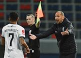 Фонбет - Кубок России по футболу 2023/24. 1/4 финала. Матч между командами ЦСКА (Москва) - "Балтика" (Калининград) на стадионе "ВЭБ Арена". Главный тренер команды "Балтика" Сергей Игнашевич (справа) и игрок команды "Балтика" Роберто Фернандес (слева) во время матча.