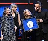 Церемония награждения Национальной ресторанной премии "Wheretoeat Russia 2024" в Концертном зале "Зарядье". Коллектив бара More (Казань), совладелец бара More Валерий Плихта (справа) во время церемонии.