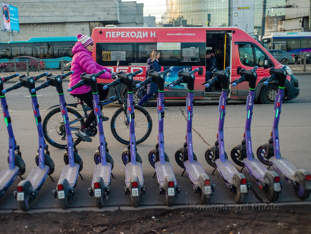 Виды Санкт-Петербурга. Жанровая фотография. Электросамокаты на одной из улиц города.