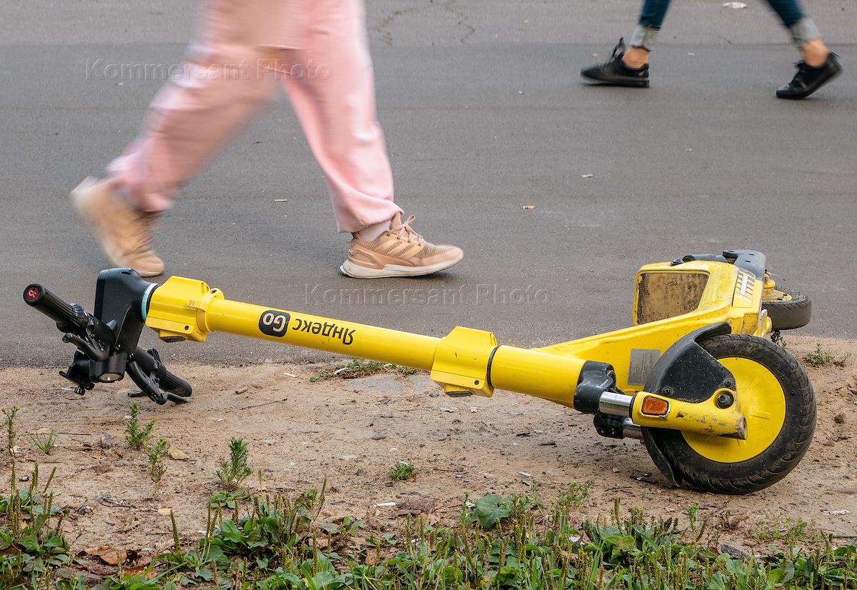 Виды Санкт-Петербурга. Жанровая фотография. Электросамокаты на одной из улиц города.
