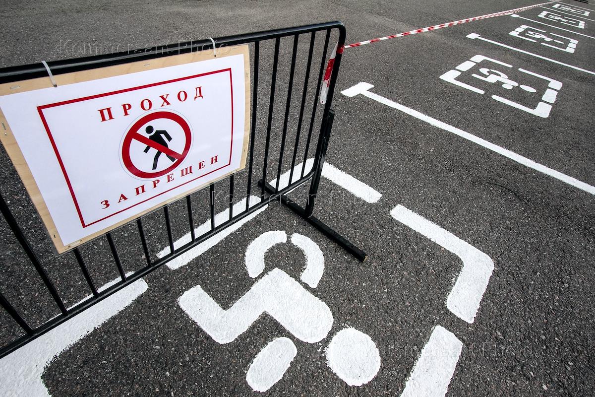 Genre photography. Road markings on the asphalt "Parking for the disabled."