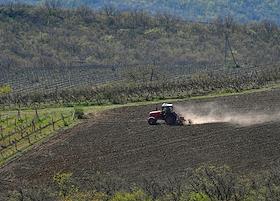 Виды Алушты. Жанровая фотография. Полевые работы. Трактор во время обработки почты.