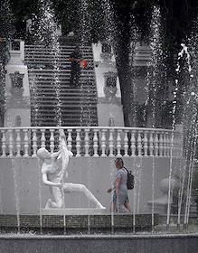 Виды Алушты. Жанровая фотография. Фонтан "Рыбак" (историческое название – "Мальчик с рыбой").