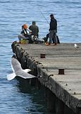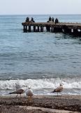 Виды Алушты. Жанровая фотография. Люди на пирсе ловят рыбу в море.