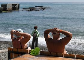 Виды Алушты. Жанровая фотография. Отдыхающие на пляже.