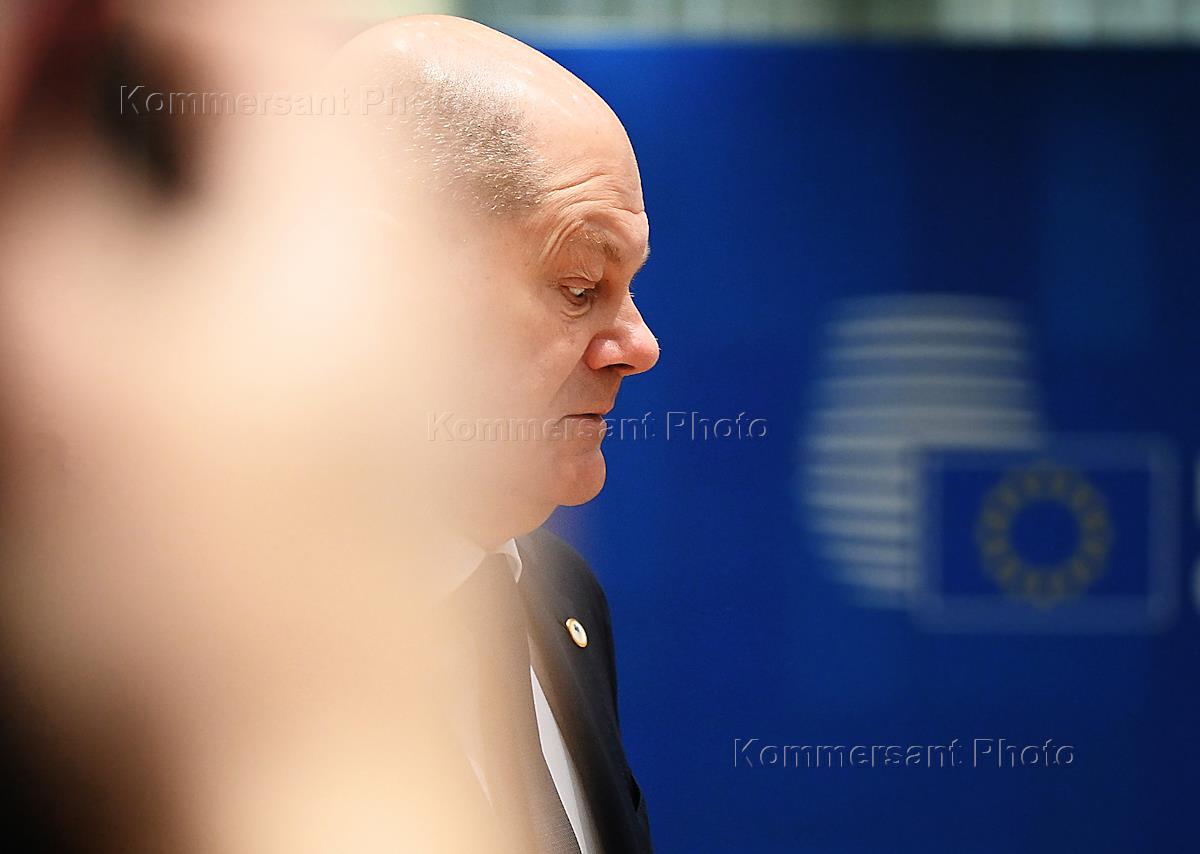 Саммит Европейского Совета (ЕС) в Брюсселе. Канцлер Германии Олаф Шольц на саммите.