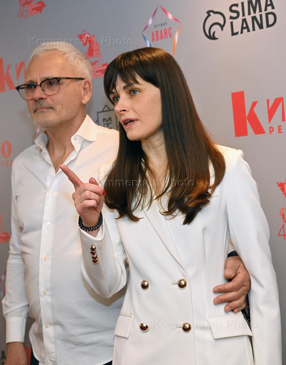 46-й Московский международный кинофестиваль (ММКФ). Мероприятие "Белый прием" и церемония вручения премии "Аванс" журнала "Кинорепортер" в ресторане "Чаiка". Генеральный директор "ВГИК-дебют" Федор Попов (слева) и его супруга Эля (справа) на церемонии.