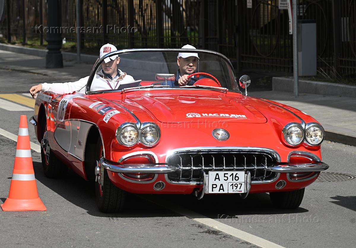 Церемония открытия 9-ого сезона Кубка Российской автомобильной федерации по ралли на классических автомобилях. Старт автопробега ралли "Столица" в парке "Музеон". Участники во время автопробега.