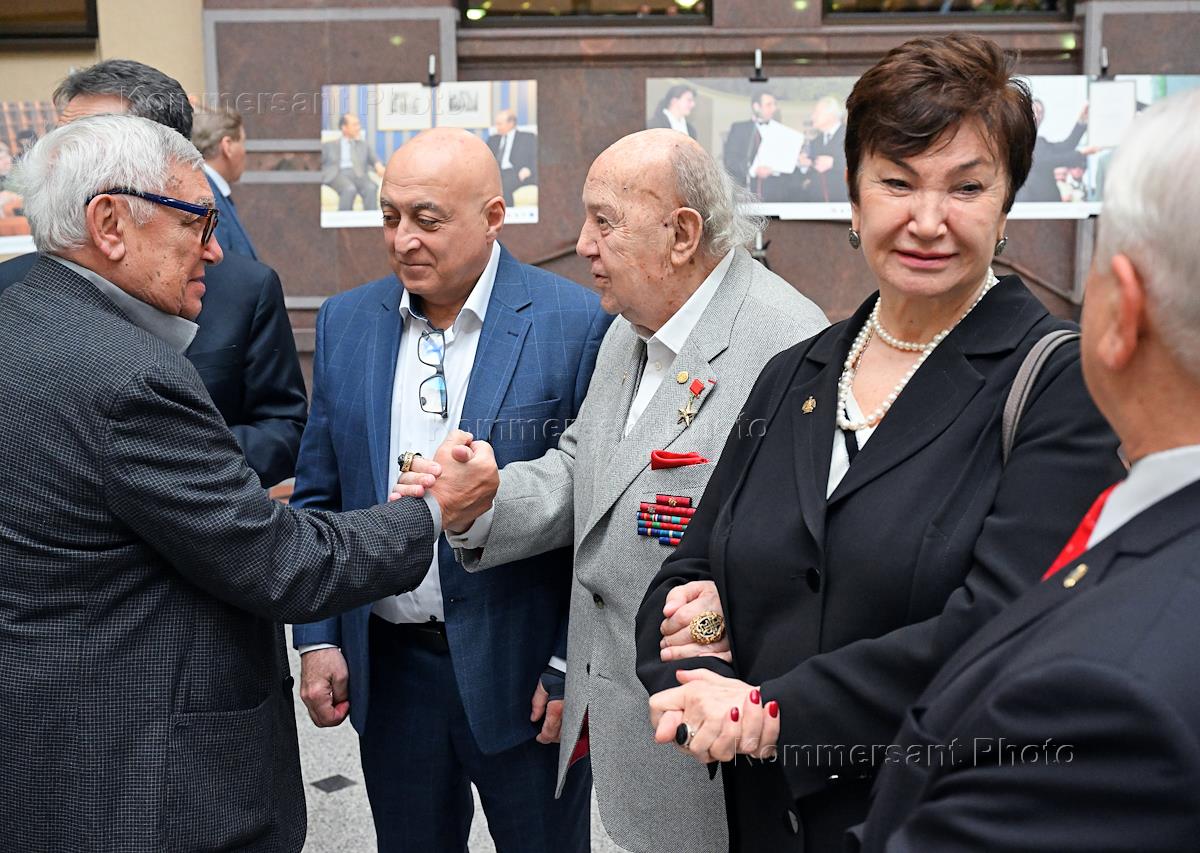 Церемония открытия фотодокументальной выставки, посвященной 70-летию присоединения России (СССР) к Организации Объединенных Наций по вопросам образования, науки и культуры (ЮНЕСКО), в здании Министерства иностранных дел (МИД) России. Президент Российской академии художеств Зураб Церетели (в центре) во время церемонии.