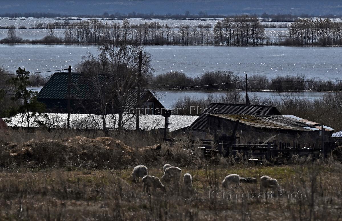 Паводок в Тюменской области. Река Ишим во время разлива. Жанровая фотография.